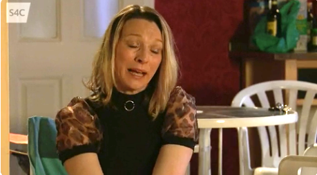 At Llwyncelyn, Hywel is preparing to go out when Angharad, in a very short skirt, announces, “I’m organising a surprise for Gaynor and I need your help. You don’t like this furniture, do you?