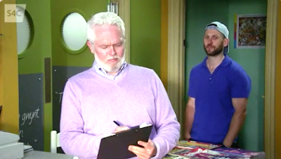 Iolo has been called to fix a plumbing problem at the bookshop, and reminds his father that he knows where everything is, having worked there before.