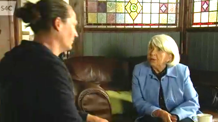 In the kitchen at Penrhewl, Eileen, who is in tears, is doing the ironing when DJ comes in. “If I’ve come at an awkward time, I can come back,” he offers, but she replies that company helps.