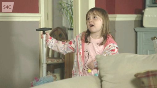 Suddenly Eleri comes rushing in, carrying a battery-powered drill to which she attaches the battery, informing them that there will be some noise for a few minutes.
