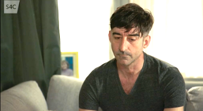 When informed that she has gone to Ethan’s, he regards that as a pity; “But there will be more marshmallows for us, then – although you haven’t got a fireplace to toast them.” Ffion laughs that she knew he was going to say that, and he points out that she cannot blame a man for trying.