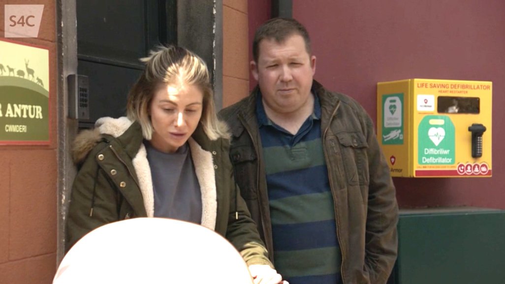 Sioned is exhausted, sitting at Penrhewl, watching the television, when she hears the front door open