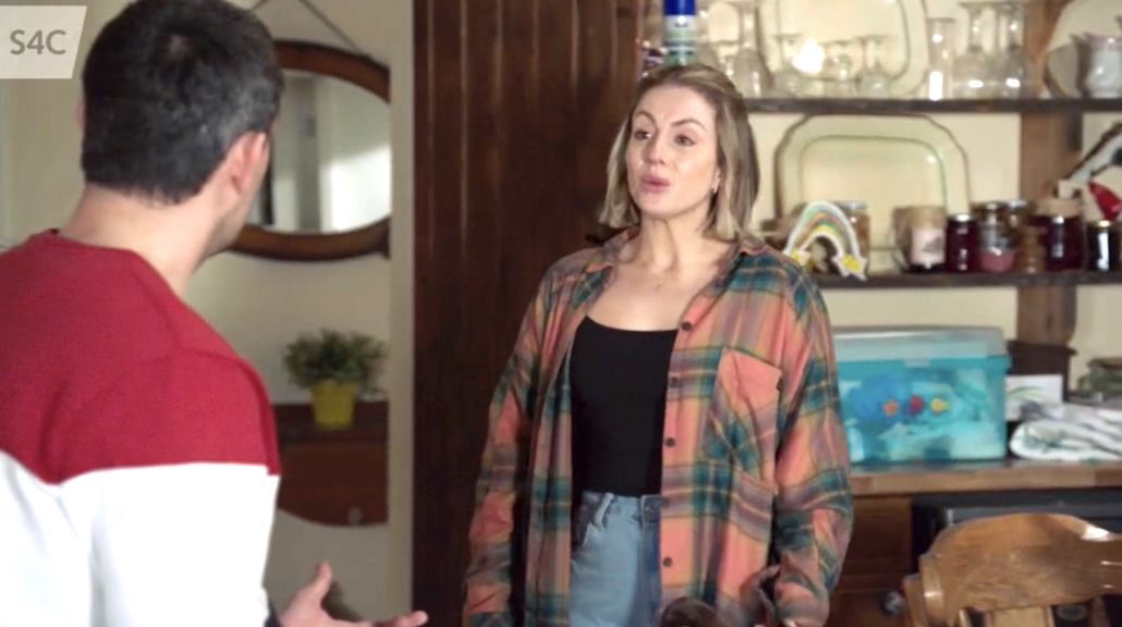 Ffion is not aware of what is going on and mutters, “What are you doing back here, Jinx?